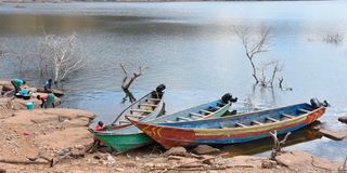Boats for fishermen parked at Turkwel Dam in West Pokot County on December 15, 2021. Fish in the dam has declined and there are plans to ban fishing for six months for the numbers to rejuvenate.
