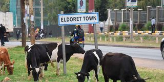 Cows grace on the roadside in Eldoret town on December 13, 2023. Cows and other ruminant animals like goats and sheep emit methane gas,which traps 80 times more heat than carbon dioxide, making it a major contributor to climate change.