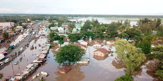 A section of Ahero town, Nyando Sub-County, submerged in flash floods from the River Nyando on November 29, 2024.