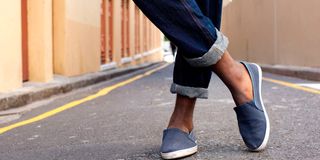 Man crosses his legs.