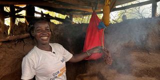 Mary Anekea, a farmer from Ingoste in Kakamega County, uses cow dung ash and soot collected from her kitchen to preserve a variety of seeds.