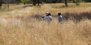 Members of the Kaume B fodder group inspect indigenous grass meant for seed production. PHOTO| ISAIAH ESIPISU