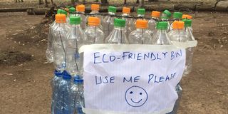 Kenyatta University-United Nations Educational, Scientific and Cultural Organisation Club (KU-UNESCO) reuses plastic bottles to make dustbins. Though the project is in the prototype stage, several bins are already in use at the university. The bin, regarded as a masterpiece, is made of 60 plastic bottles, wires and a sturdy metallic base.