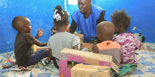 Ms Helida Achieng, a Community Health Promoter, plays with children at Orongo health centre's play corner on November 21, 2024. The play station is often utilised by the children and their mothers during the routine antenatal care visits at the facility.