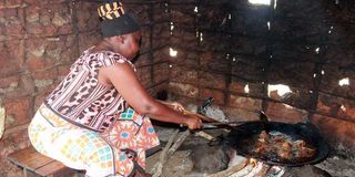 Tabu Taura (Mama Sadiki), 51, fries fish for sale at her business premises in Mavueni, Kilifi County, on August 27, 2025. She has been using firewood for the past two decades as the only affordable way to sustain her business and family.