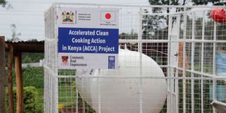 A cooking gas cylinder installed at Naromoru Girls High School in Nyeri. President William Ruto has ordered all public institutions to transition to gas cooking by 2025.