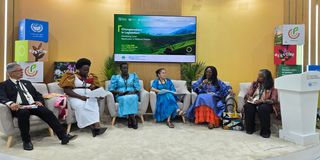 Dr Musonda Mumba (second right), the secretary-general of the Ramsar Convention on Wetlands, speaking at a panel discussion during COP16 in Riyadh, Saudi Arabia
