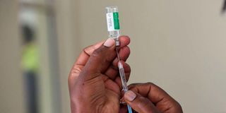 A health worker prepares to administer a dose of Covid-19 vaccine at Kenyatta National Hospital in Nairobi.