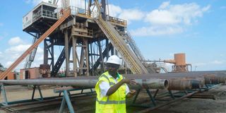 Mr Stephen Kangongo, an engineer at Geothermal Development Company Paka Hills drilling site in Tiaty, Baringo County on August 4, 2023 explains how a drilling rig operates.