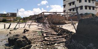 A fence that was partly washed away along the shoreline in Wiyoni, Lamu.