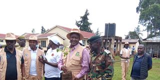 Conservation Secretary at the State Department for Wildlife, Dr John Chumo (holding a tree seedling), plants a tree to mark World Crane Day at Kosirai High School in Nandi County on September 20, 2025.