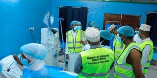 Mandera Governor Mohamed Adan Khalif and other officials when the renal dialysis unit was officially opened at Mandera County Referral and Teaching Hospital on August 29, 2025. The facility has reduced costs of kidney treatment in Mandera.