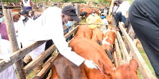 Cows being vaccinated against foot and mouth disease. A new wave of livestock disease outbreaks is spreading across several arid and semi-arid counties.