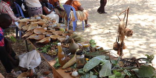Indigenous seeds and herbs on display during the biocultural festival in Chiakariga, Tharaka Nithi County on September 22, 2025.