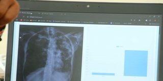 A chest radiograph being investigated for TB using an AI tool at Karatina Level IV Hospital in Nyeri.