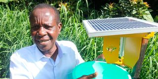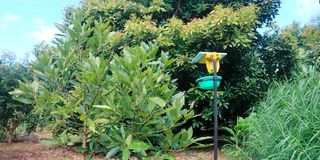 A solar pest trap installed on Mr Kinyua Nkanata’s avocado farm in Meru.