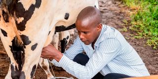 Kansiime Jackson, a Ugandan dairy farmer and chairperson of Kalyabulo cooperative that has 100 dairy farmers. Their cows are producing between 4,500-3,000 litres of milk per day.