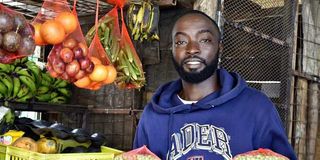 Samson Kamande, a nurse, sells fruits in Dagoreti Corner.