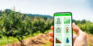 An agricultural app. Digital tools empower farmers with accurate drought and flood forecasts, and mobile platforms delivering essential weather updates and market information directly to users.