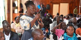 Elizabeth Atieno gives her views during a public participation in Eldoret City on August 12, 2025.