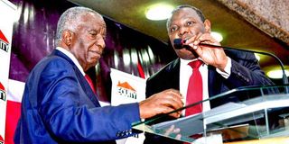 Equity Group founder Peter Munga (left) and chief executive James Mwangi at a past event.