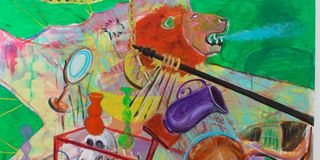 The humour and the horror that he speaks to me about may be best expressed in a painting like ‘Field Guides: Passage into the Interior’.