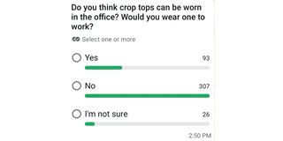 The idea of wearing crop tops to the office remains debatable.