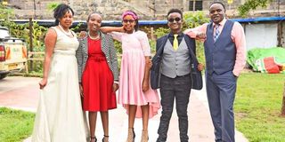 The blended family of Joshep Mwangi and her wife Nellie Njeru with their children Samuel Mwangi, Joy Mwangi and Precious Mwangi at their home in Kiamunyeki, Lanet in Nakuru county on October 20, 2020.