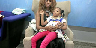 Diana Mwalili with her daughter Angel Rebecca, 5, during her interview at Nation Centre. Angel suffers from hypoxic ischaemic encephalopathy (HIE) that has made it impossible for her to sit up straight, walk or eat on her own. Her mother has lost all her savings due to treating the condition. PHOTO | DENNIS ONSONGO | NATION MEDIA GROUP