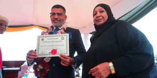 Mombasa Governor Abdulswamad Shariff Nassir with his mother, Nassim, during his swearing-in as the county's second governor in September 2022.