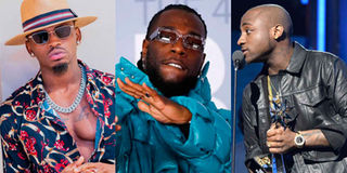 Musicians Diamond Platnumz (left) Burna Boy and Davido.