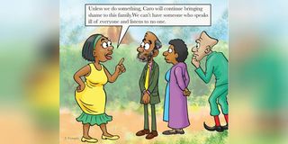 When Rumona, Tito’s wife, was allegedly caught in a compromising position with a prison warden in Kitui, Caro broadcast it. When Yunia and her husband fought over chapati thickness, Caro told the whole village. Even Ford, my brother, hasn’t forgiven her. One time when he came into some money and tried to secretly enjoy village life, it was Caro who leaked the intel to the police. If that’s not a reason for expulsion, what is?