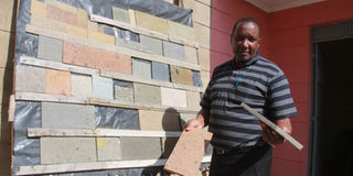 Ndegwa Muriithi displays tiles at his company, Stone Centre at Kiganjo, Nyeri County. PHOTO |JOSEPH KANYI