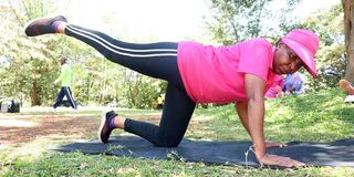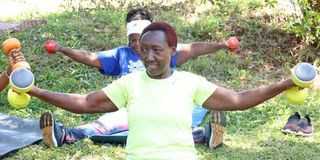 Agnes Maganjo, a retiree, during a workout session at Karura Garden in Nairobi on March 14, 2025. The session highlights the importance of physical fitness and active living in retirement.
