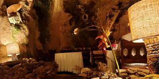 - At Ali Barbour’s Cave Restaurant diners has to descend ten meters underground, and enter the 180,000-year-old cave glowing in warm golden light that hints at hidden treasures in the cave wall