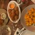 My meal arrives first, and I am astonished at how much is on the plate. My serving is heaped with four huge bones cut in half, exposing the bumbling hot marrow. On the side is freshly-baked bread, and a cup of soup.