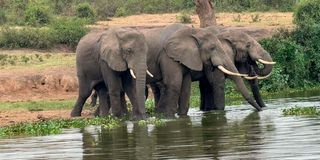 A few kilometres past the equator, we suddenly spot a family of elephants. We’re driving through Queen Elizabeth National Park which runs between Kasese and Kampala.