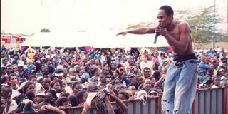 Tanzanian music icon Lucas Mkenda, popularly known as Mr Nice performs at a concert in Nairobi.