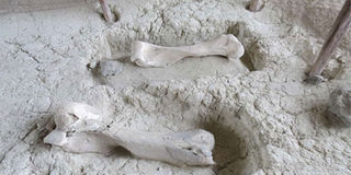 992,000 year old fossilised bone of an extinct elephant at Olorgesailie. PHOTO | RUPI MANGAT