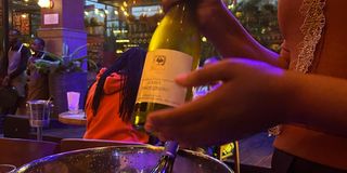 Sommelier showcasing a bottle of pinot grigio at Artcafe Gastro Bar