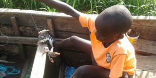 Luo boy fishng in is boat with cichlids on his line. The founding president of Tanzania, Julius Nyerere also has a cichlid named after him in Lake Tanganyika. Photo | Rupi Mangat