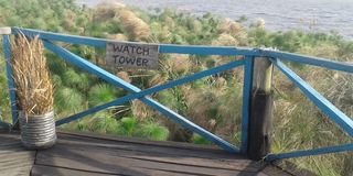 The watch tower ovwelooking the papyrus swamp and L. Victoria. Photo | Rupi Mangat