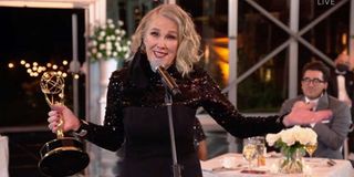 Canadian actress Catherine O'Hara being handed the Emmy for Outstanding Lead Actress in a Comedy Series for Schitt's Creek during the 72nd Primetime Emmy Awards ceremony held virtually on September 20, 2020.