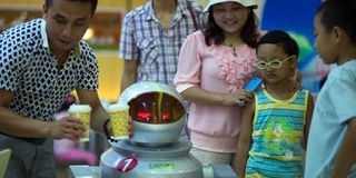 "I've never seen a robot serving food before," said Yuan Yuan, nine. "I'm really surprised."