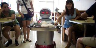 This photo taken on August 13, 2014, shows a robot carrying food to customers in a restaurant in Kunshan. AFP | PHOTO