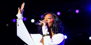 Nigerian singer Tems performs during the Blankets and Wine event held at Laureate Gardens in Nairobi on September 28, 2025.
