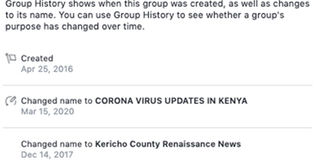 Many admins of political groups are also now changing the titles of their groups to include “coronavirus” because they know Kenyans are searching for information on the term on Facebook. There is great potential to turn such groups into cesspits of misinformation.