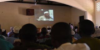 Students of Gede Secondary School in Kilifi watch video of muslim cleric Aboud Rogo's preachings in March 2020 during a lecture by KDF soldiers on dangers of joining Al-Shabaab.