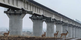 A construction site for the standard-gauge railway in the Nairobi National Park in 2018. A contract document reveals gross exaggeration in costs of items for the project. YASUYOSHI CHIBA | AFP