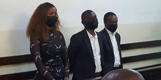 A surgeon Dr Robert Maweu Mutula (right) and proprietors of body by design health clinic George Njoroge and Lilian Wanjiru at the Kibera law courts on April 15, 2025, where they have been charged with unlawfully killing Lucy Wambui Kamau on October 16 2025.